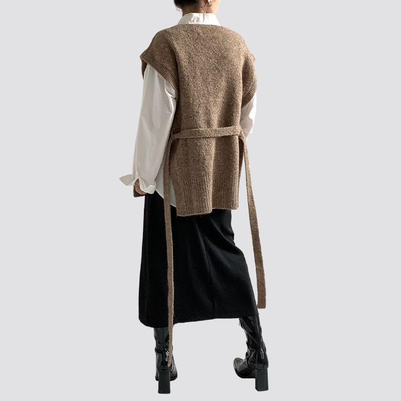 Tvrtka uglavnom proizvodi dječje, muške i ženske pletene veste. Ženski pleteni pulover bez rukava s V izrezom kaki boje company in China.