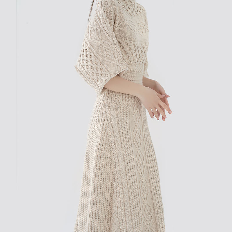 Suknja ima labave manžete, predimenzioniran rub i neograničeno grudi. U pojasu suknje je dodana elastična nit.